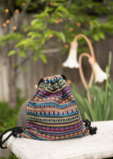 Geo Native Drawstring Backpack - Hobo Bag - Mini Backpack - Canvas Backpack - Hippie Bag & Purse