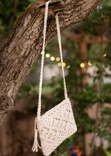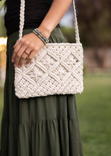 Stella White Cotton Macrame Purse - Macrame Bag - Hand Knotted Bag - Hippie Purse - Small Crossbody Purse