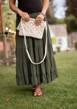 Our Magnolia Macrame Purse is hand knotted for that perfect macrame style in a purse. Its simple slim but wide body makes it both fun and versatile. It is the perfect accessory for every outfit!