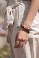 Natural Tiger Eye Gemstone Bracelet Healing Stone Inspiring Bracelet Vegan Leather 2 Wraps Yoga Beads Bracelet Gift