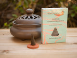 Krishna is a major deity in Hinduism and is the god of compassion, tenderness, and love. The scent of Krishna Musk symbolizes happiness and joy, making it a wonderful incense to start your morning. Auroshikha incense cones are made of a paste consisting of the powders of dried flower petals, sweet scented herbs and woods, spices, resins, natural essential oils, and charcoal to assist with burning. The paste is then molded into a cone and left to dry.