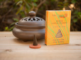Frankincense has been used in religious ceremonies for thousands of years.  Originally used as an offering to the gods, now it is often burned for the soothing effects it produces. With its intrinsic intellectual powers, this incense encourages independence, tolerance for adversity, freedom of expression, and clarity. Auroshikha incense cones are made of a paste consisting of the powders of dried flower petals, sweet scented herbs and woods, spices, resins, natural essential oils, and charcoal to assist with burning. The paste is then molded into a cone and left to dry.