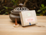 Satya's White Sage cones produce a minty and refreshing sent. The scent of white sage helps with physical and spiritual healing. Cone incense are a simple and fun way to burn incense, and Satya makes it easier with an included incense holder. Be sure to check out our incense holder with a wider base to make burning even safer.