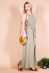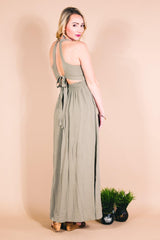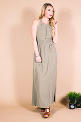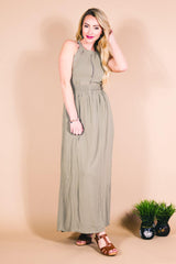 Sleeveless Olive Halter Long Maxi Dress - Any Occasion - Festival Summer Spring Wedding Dress