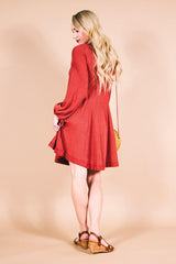 Bold Red Long Sleeve Short Mini Dress - Boat Neckline - Festival Hippie Clothing - Cottagecore