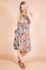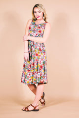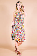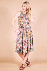 Floral Sleeveless Midi Dress - Blue & Colorful Festival Dress - Cottagecore Dress