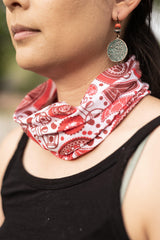 Tribal In Red Multifunctional Headband & Mask – Hair Wrap Bandana – Scrunch Headband – Yoga Headband