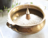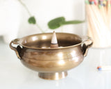 Our Bronze Tibetan Incense Bowl in Gold is a beautifully crafted round incense bowl. Simply fill the bowl with sand and you can burn incense sticks, incense cones, rope incense, resins, smudges, and so much more. Two handles make the bowl easy to carry and feature traditional Tibetan engravings.