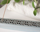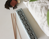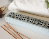 Our Ceramic Box Incense Burner offers a unique patterned lid design to make incense burning safe and beautiful. Uniquely designed to burn incense laying flat and when an incense is burned, it releases a soft, gentle stream of smoke, which passes through the crevices of the box creating a calming effect. There is also a heat resistant black fabric on the inside, which prevents damage to the bamboo and helps to oxygenate the incense as it burns. Slim, elegant, and beautifully designed; this incense holder is the perfect accent for any home or office.