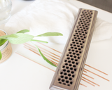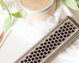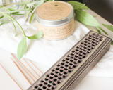Our Ceramic Box Incense Burner offers a unique patterned lid design to make incense burning safe and beautiful. Uniquely designed to burn incense laying flat and when an incense is burned, it releases a soft, gentle stream of smoke, which passes through the crevices of the box creating a calming effect. There is also a heat resistant black fabric on the inside, which prevents damage to the bamboo and helps to oxygenate the incense as it burns. Slim, elegant, and beautifully designed; this incense holder is the perfect accent for any home or office.