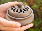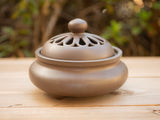 Om Mani Brown Round Ceramic Incense Burning Bowl
