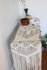 Inspirational 90" Antique White Long Macrame Table Runner - Wedding Table Runner - Farmhouse Table Runner