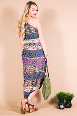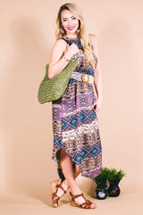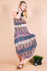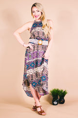 Halter Long Midi Dress - O-Neckline with natural waistline - Any Occasion Casual Work - Hippie Dress