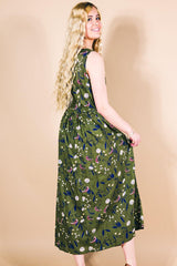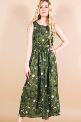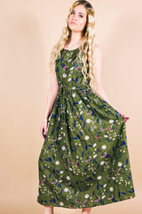 Green Sleeveless Long Midi Dress - Any Occasion Casual Work Dress - Floral Cottagecore Clothing
