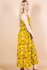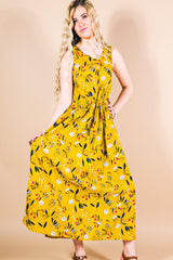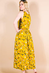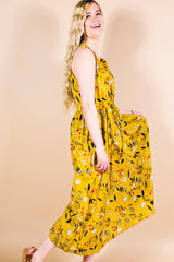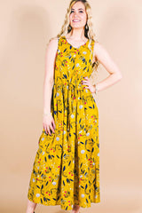 Yellow Sleeveless Long Midi Dress - Any Occasion Casual Work Dress - Floral Cottagecore Clothing