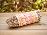 What is Rope Incense? With Rope Incense, the incense mixture is rolled into paper sheets that are then rolled into ropes. The thicker end is referred to as the bight and is meant to be placed into sand or stones to hold the rope up or you can lay the entire rope to be flat over sand. The thinner end is the end that is burned.