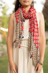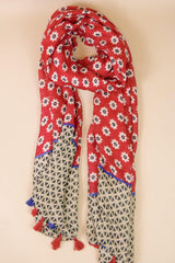 Cool Cat Red Long Cotton Scarf - Lightweight Scarf - Autumn Scarf - Festival Scarf - Rectangular Scarves