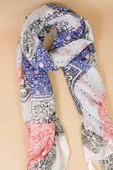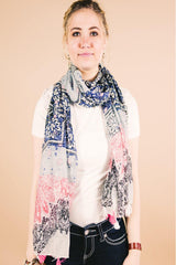 Country Pink Blue Long Cotton Scarf - Breathable Hip Scarf - Autumn Scarf - Festival Scarf - Rectangular Scarves