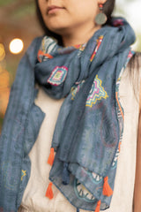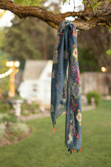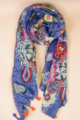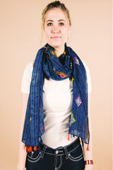 Groovy Blue Vintage Long - Breathable Hip Scarf - Autumn Scarf - Festival Scarf - Rectangular Scarves