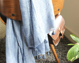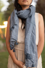 River Blue Long Cotton Scarf - Lightweight Scarf - Autumn Scarf - Festival Scarf - Rectangular Scarves