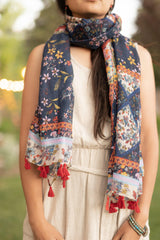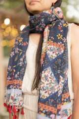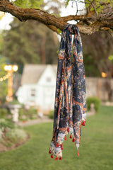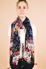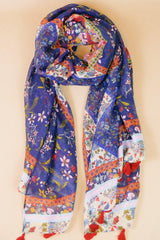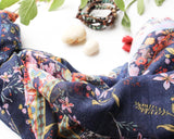 Wildflower Blue Floral Long Lightweight Scarf - Breathable Hip Scarf - Autumn Scarf - Rectangular Scarves