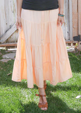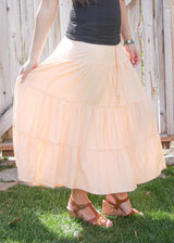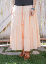 Amani Plain Pink Tiered Flowing Maxi Skirt - Sustainable Bamboo Fabric - Hippie Style Skirt - Gypsy Style Clothing