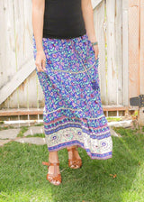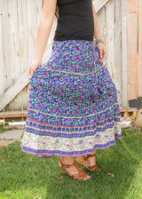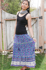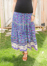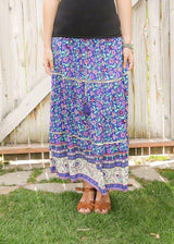 Blue Violet Floral Lightweight Tiered Midi Skirt Skirt - Cotton & Rayon Fabric - Hippie Style Skirt