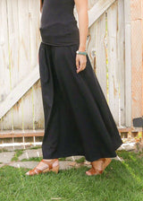 Shanta Plain Black Lightweight Maxi Skirt - Sustainable Organic Cotton Fabric - Formal & Casual Skirt