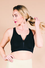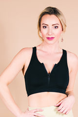 Sexy Women's Active Black Sports Bra - Zippered Front - Recycled Fabric - Sustainable Clothing