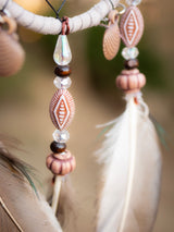 Aiyana Small Beige Dreamcatcher With Wooden Beads & Brown Feathers Tiny Space Decorations