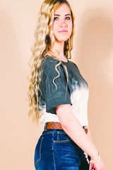 Women's Ombre Short Sleeved T-Shirt - Gray Blue Hippie Top - Summer Shirt