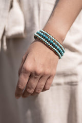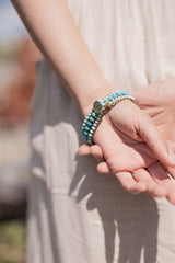 Our Tranquility Bracelet is one of the most unique products we sell. Designed with three strands of Turquoise stones, this bracelet is easy to stack or wear alone. The strands represent The Triad and the turquoise symbolizes peace and harmony. Combined, this bracelet helps bring balance and joy to your life.